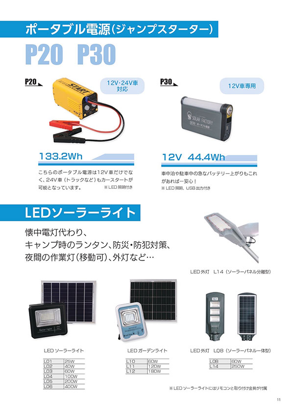 ポータブル電源(ジャンプスターター)・LEDソーラーライト